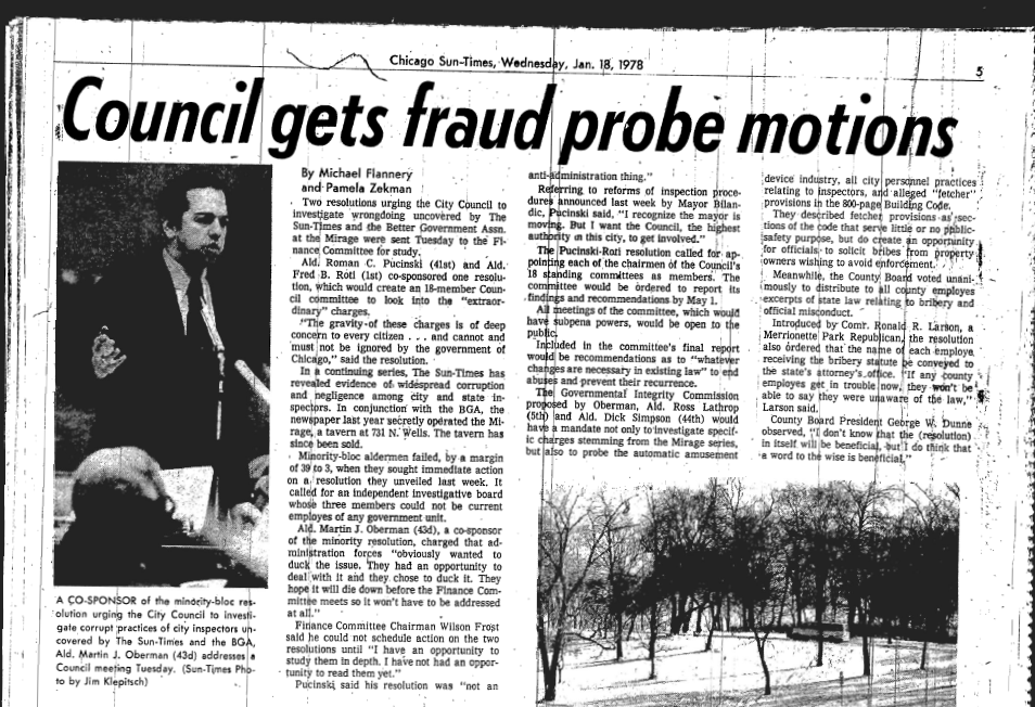 Tags: corruption, expose, Mirage, Pamela Zekman, payoffs, Sun-Times, tavern, Zay N. Smith
