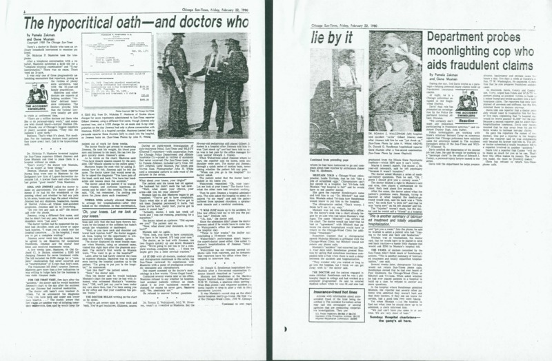 Byline: Pamela Zekman, Gene Mustain; 1980-02-22; Chicago Sun Times; pages 6-7