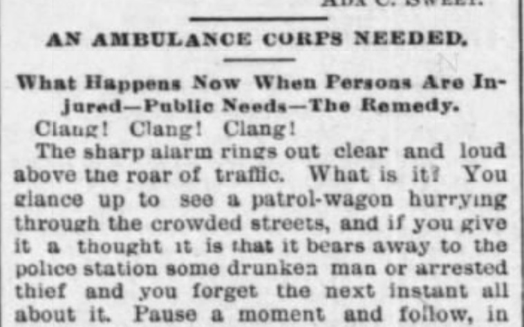 Rights: Ada Sweet, "An Ambulance Corps Needed," The Chicago Tribune (Newspapers.com a paid subscription)